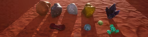 Currently, there are 8 gatherable resources like fruits, ores, and corpses, and over 10 craftable resources that can be used to build useful machines and base parts.