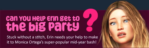• Your aspiration: guide Erin though an epic comedic adventure to make it to Monica Ortega's massive mid-year house party!