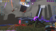 In Epigenesis, two teams face off in an attempt to plant a ball inside an enemy's goal more times in ten minutes than the opposition across a platformed ravine. The arenas aesthetically resemble something out of Tron but play like something out of Quake. Each player is given a non-lethal laser with two modes: rail (an instant, focused beam which pushes enemies back a small amount) and shot (a mode which fires a missile-like projectile which travels slowly but produces an explosion that pushes back enemies a lot). The gun is a key part of both offense and defense -- pushing an enemy back and causing them to fall off a ledge or preventing them from landing on one in the first place spells instant death, producing a 5-second respawn timer. In addition, hitting an enemy who's in the air with your melee attack sends them straight downward, and if they fail to land on a platform? Splat.