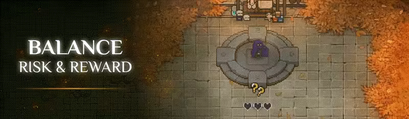 Balance risk and reward as your make your choices! Push your luck to grow your build, but don't overestimate your abilities, or your run could end on the spot. Navigate the dungeon wisely and reap the rewards to optimize your build to crush the dungeon with 13 unique characters!​