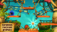 Technically, as mentioned before, the menues and stuff are pretty meh! and have that mobile-look to them (you know, big, colorful buttons and "funny" fonts) - but the actual gameplay looks really nice. Big, cartoony characters, decently animated and good looking backdrops - good sense of color too (with the exception of the Windmill-stage, dat cyan!). Music is a mixed bag, there are some really amazing tunes (love the graveyard!) and also some very annoying tracks (too short, loop too soon, are annoying as hell in the process). Sound-effects are good, but the granny voice-over sounds REALLY amateurish and cheap. Also, I found that in some places hitdetection is kinda iffy and analog-controls on my 360 pad didn't work properly - had to go digital. However, once I changed the controls it was pretty good and feels really precise.