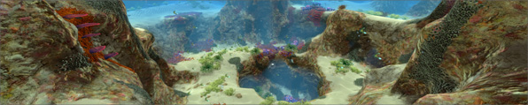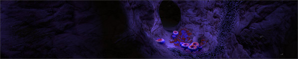 Cave systems wind below the sea bed, from dark claustrophobic passages to caverns lit by bio-luminescent life. Explore the world below the ocean floor, but watch your oxygen levels, and take care to avoid the threats lurking in the darkness.