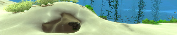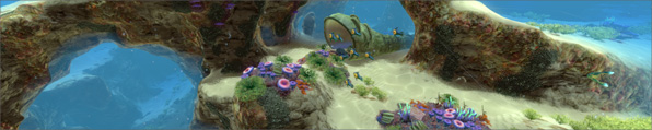 Cave systems wind below the sea bed, from dark claustrophobic passages to caverns lit by bio-luminescent life. Explore the world below the ocean floor, but watch your oxygen levels, and take care to avoid the threats lurking in the darkness.