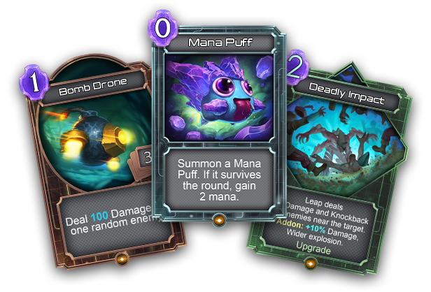 The game is about fighting your way through a series of arena battles, at the end of which a boss awaits. At the beginning of each arena you can choose cards to augment your character and prepare them for the boss fight. The card system is somewhat reminiscent of Hearthstone - each card costs mana, and you are awarded one point of mana before each arena fight.
