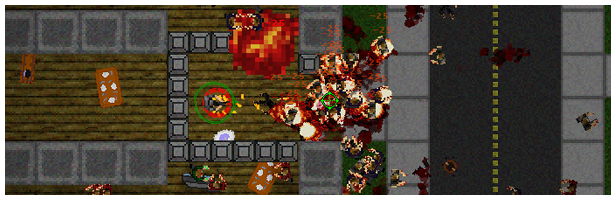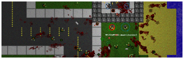 "We had to make some design decisions about the size of the map, mostly because the sort of zombie survival game that this is, is the sort where you barricade yourself in a build and fight off an overwhelming swarm. Both a large and small map were tested, but because of the spawn mechanics and the way the swarm operates, I had to choose either a small one or a larger one, and the small one just played better in my opinion."