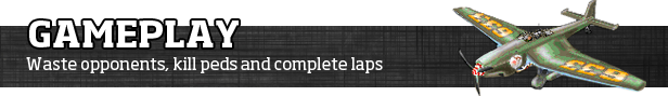 Each level has a time limit, but more time may be gained by passing through checkpoints, collecting PowerUps, damaging/destroying the competitors' cars, and by running over pedestrians (with bonuses awarded for style).