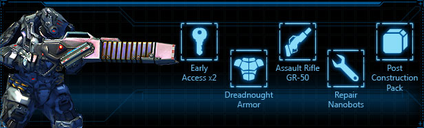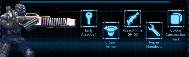 Game features a full character equipment system: armor, helmets, weapons, energy shields – all things that will be helpful for you to dominate in the colonies. In future, with addition of crafting, everyone will be able to make unique items from scratch!