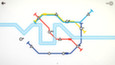 The visual presentation is minimalistic. This is a good thing. Its appearance is that of a subway/metro map. The blank background populated only by single, thick lines that represent the metro rails that the player is placing and moving about serve well to illustrate the real transit maps that are out there in the world. The player is, in essence, painting the metro maps that one would see at subway stations. It is perfect, and immediately familiar to anybody who has found themselves staring at a map, plotting their subway route and transfers to progress from point A to point B. That said, those who have never ridden a subway, or are simply unfamiliar with subway/metro transit maps may be at a loss as to why this game's visuals are as they are, and it may look to such individuals as little more than lines on an empty space without knowing or appreciating the context as to why that look may be fitting. This is a fault of nobody, only the result of individual experiences.
