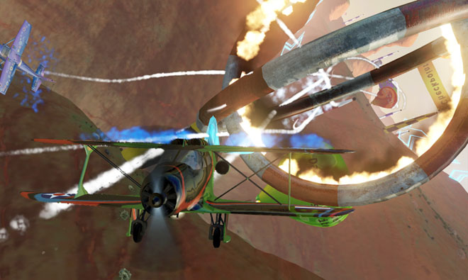 Race in huge scenic environments. Fly over mountain peaks and explore tight spaces like canyon caves and funky rock formations.