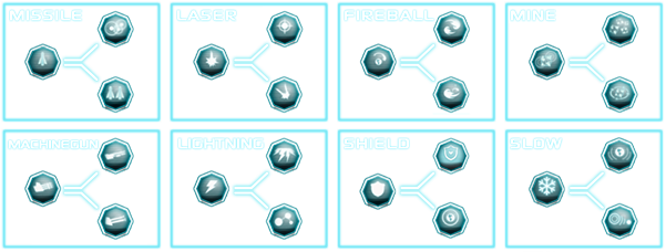 • Build 8 different turrets that have multiple upgrades.