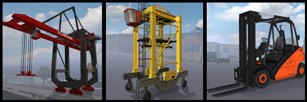 • Control all high-powered vehicles and cranes yourself to load goods: forklift, container stacker, straddle carrier, bridge and port crane