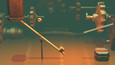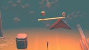 The shapes used as transport for the "wheel" are basic, from passive and hostile planes, to cubes and triangular prisms. Everything is presented in a 3D platforming perspective, and portrays itself in a whimsical mechanism known as "the Gear", an old contraption of noise and steam. Sparks would often fly up from the ground, spraying into the space. The Gear's colour palette are mostly oranges and reds, with a few yellows and pinks dabbled with here and there. They keep the game feeling warm and inviting, but at the same time, all the levels' backgrounds looked similar in aesthetics, so I never felt like I was progressing to a new area, despite the game's increasingly difficult level design.