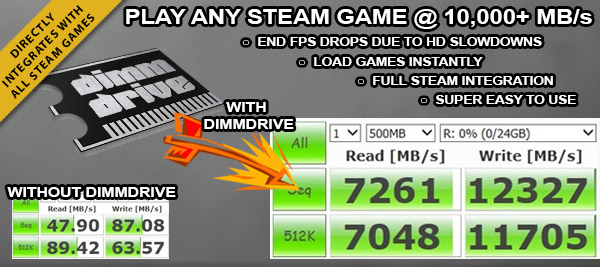 Play Steam Games @ 10,000+ MB/s :: Load games instantly with the Dimmdrive software. Dimmdrive fully integrates with all Steam games.