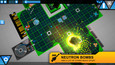 There are 21 defense towers available, reaching from pistol-sentry-towers, over incinerating flame-throwers to powerful long-range railgun towers. In addition there are 7 production towers which produce your main resource: RAM (Random Access Memory). Yes, building up a small RAM economy is very important, in order to keep your system routines running. Towers must be deployed by an expensive capsule drop and you have to find the sweet spot between the right amount of resource production towers and the performance of your defense perimeter. You can unlock and install new tower versions in the uplab.