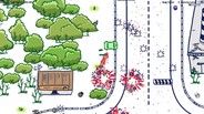 Graphically, this game is exactly what you see in screen shots. Models are just sprites that rotate and die. The finest point of the visuals is the very legible and helpful color coding. All shots are red. Avoid red. Green is money, health, and usable cars. Get green. Anything that moves is an enemy. You will never not know what is going on in this game, and that's kind of great.
