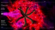Amusing visuals that are synchronized to music, with strangely addicting gameplay...