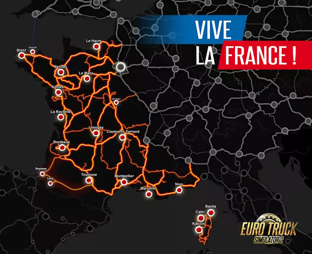 Vive la France ! is a large map expansion add-on for Euro Truck Simulator 2.