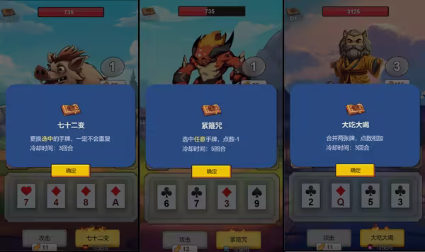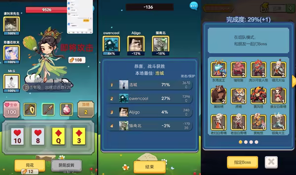 Supports 2 to 4 players cooperating to defeat bosses. In this mode, the playing cards can not only attack but also protect teammates.