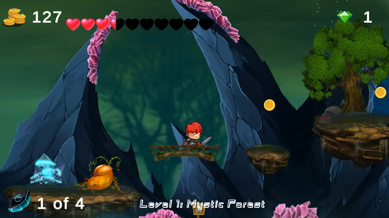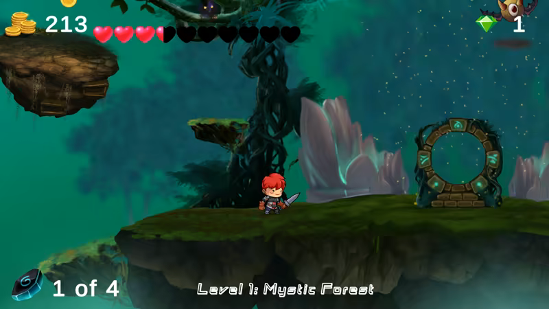 Help Red explore different beautiful worlds as they try to find his way back home. Play through a gorgeous level of eye-catching and tranquil handmade art. Battle with different monsters, collect coins and gems, find the hidden runes, and unlock the exit portal to go back to your world!