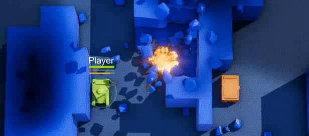You can surprise your opponent by breaking crates with grenades within their reach. After the explosion, the grenades scatter around and destroy everything in their vicinity, including the environment.