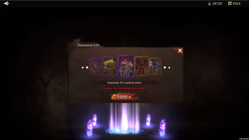 The game features a total of 10 races: Dungeon, Infernals, Imperials, Barbarian, Mechanicals, Elves, Celestials, Tower, Undead, Orcs. There are over 100 distinct units (with 62 available at launch), each with unique skills. New units will be continuously added in future updates or DLC.