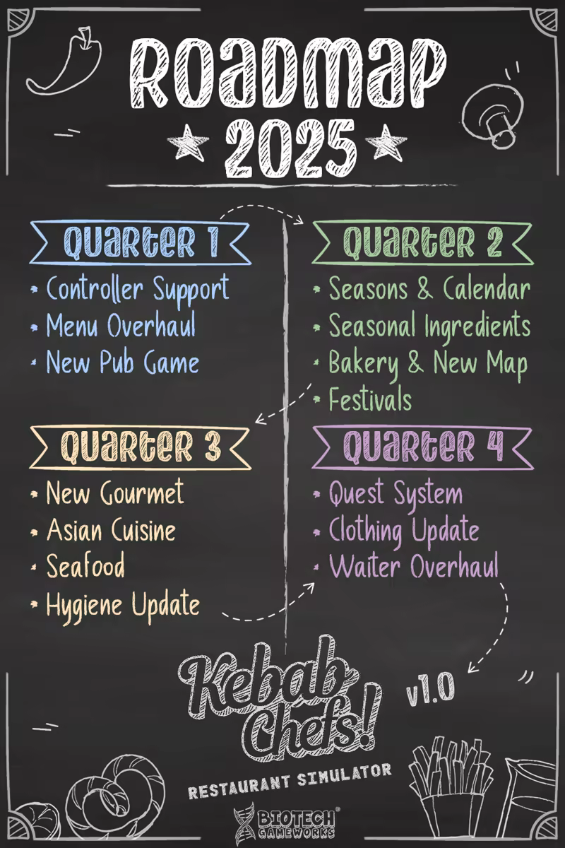 “As indie developers who love simulation games, we preferred Early Access because we want Kebab Chefs! to reach it's full potential. And we believe the right way to achieve this is taking further steps of development with the community. We are looking forward to shape our roadmap with the feedbacks we get from the community and collaborate with our players for every aspect of the game.”
