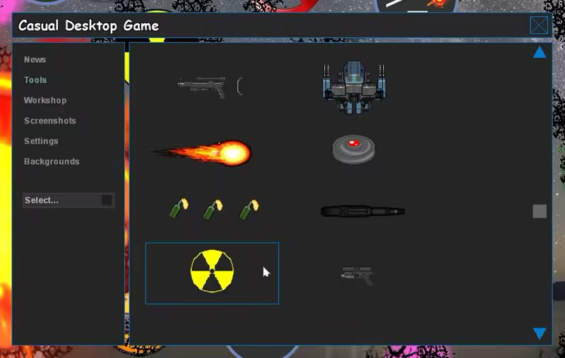Then this game is the right choice for you! Casual Desktop Game is a fanmade revival of the ancient Desktop Destroyer game where you can "destroy" your screen with various tools. Or you can lend back and watch entities taking combat on your Desktop.