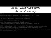 You make investments in infrastructure, security, education, workforce, food, production, or trade to grow the economy, and set tax rates. Bad weather, corruption or international grants will affect your policies. Citizens will be unhappy if your economic policies fail and will increase crime and instability of economy. Each ACES turn is one year and goes on for ten year period. At the end of each year key performance indicators and news reports are shown (After Action Report). At the end of ten years a graph shows ten-tear performance and your performance is evaluated (After Action Report).