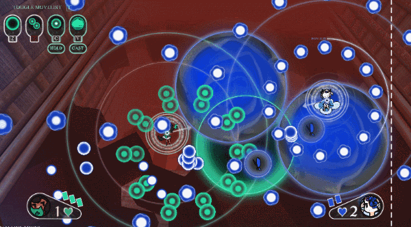 Battling with magic is simple! Fire your spells, hit your opponent, and don't get hit yourself! Each maiden is color-coded and has a set of abilities unique to them, activated at a press of a button. There aren't any complicated combos or intricate inputs or grabs or melee attacks or block buttons! Just a 3-pixels-wide hitbox, a lot of shiny bullets, and your own dodging skills.