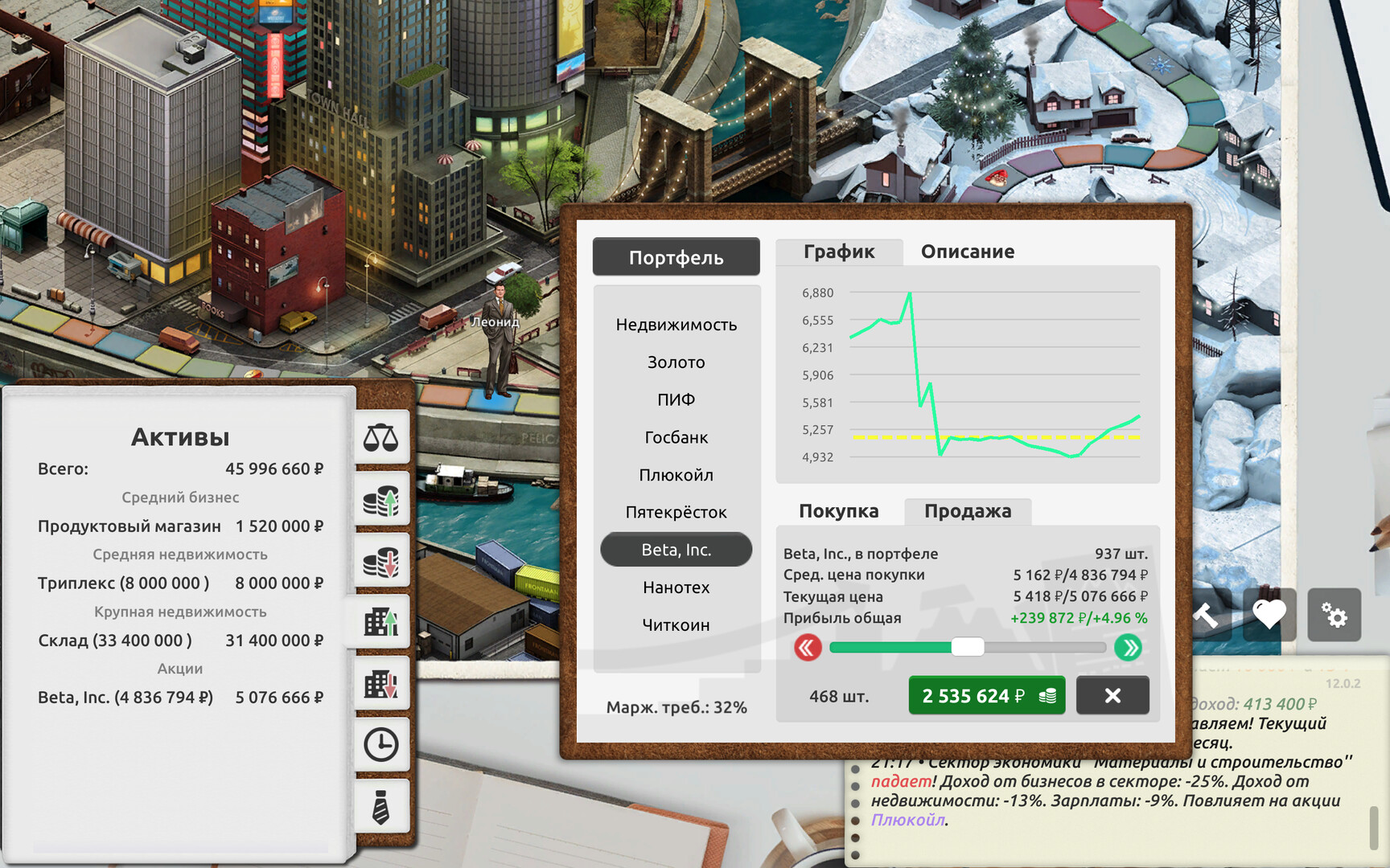 2. Финансовая грамотность: игра учит вас созданию капитала, инвестициям и управлению деньгами. Вы узнаете больше о бирже, инвестициях в недвижимость, криптовалюты и даже рынок искусства.