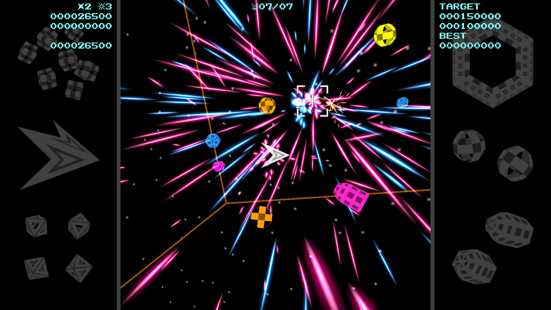 Omni Axes is an authentic 3D shooting game. You play in a 3D cube space and take down the enemies coming at you from all directions to aim for a high score.