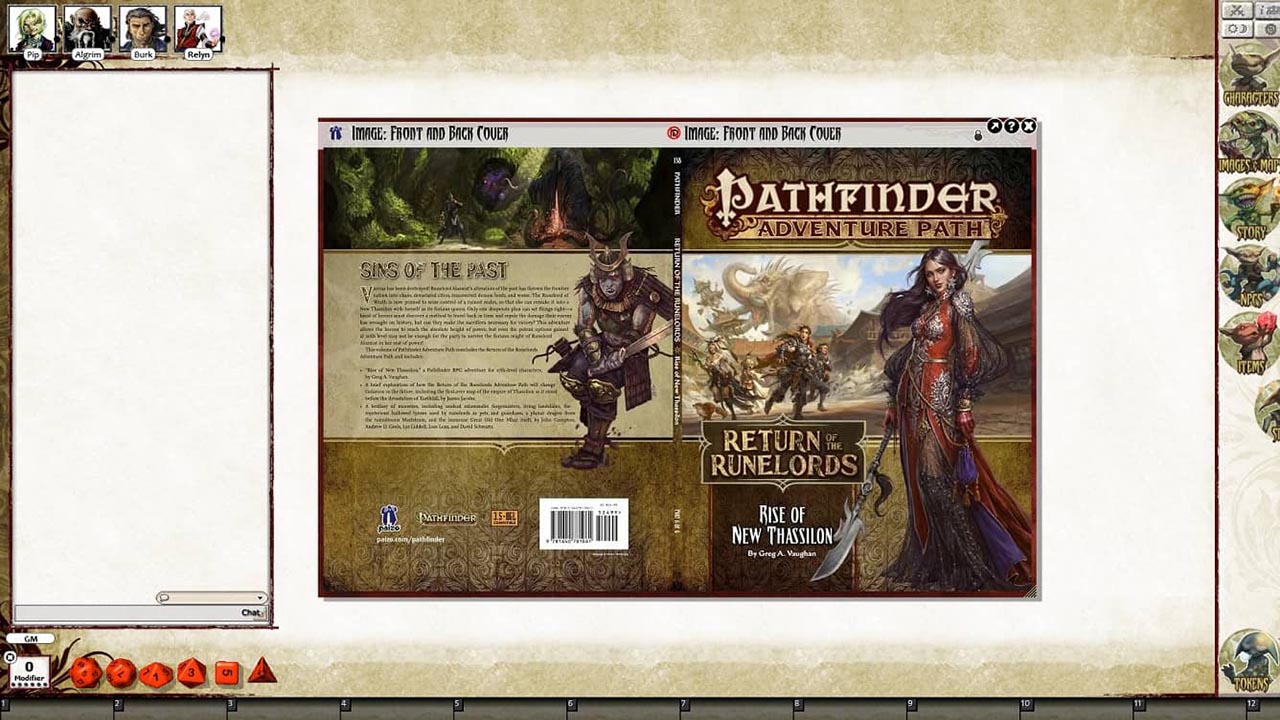 Requires: The free Fantasy Grounds virtual tabletop (VTT) software and the included Pathfinder RPG and D&D 3.5/ OGL ruleset.