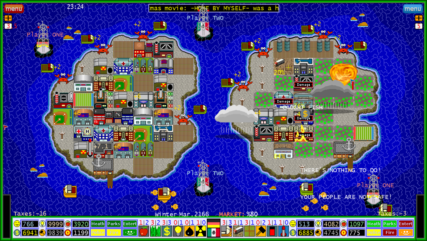 Rival Nation Wars is a 1 or 2 player real time strategy game in which you research technologies, build buildings, and manage your workforce, in order to purchase the weapons you'll need to defeat your enemy before it defeats you. Rival Nation Wars has a 1-player campaign mode spanning 18 scenarios, 2-player simultaneous head to head action, four tutorial campaigns, high score board, and a full in game manual.