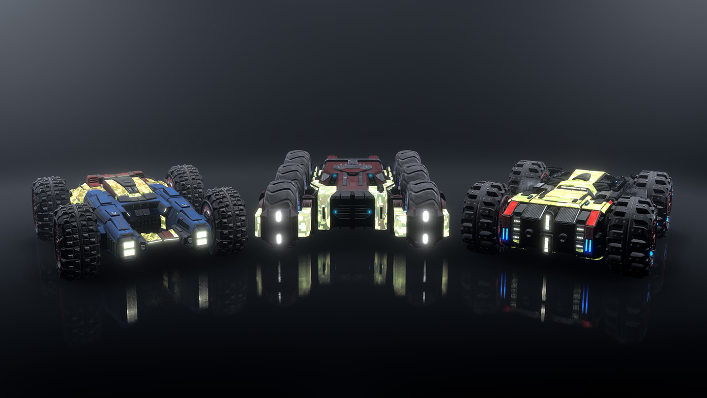 Add more customisation options to the Terra vehicle set and show the power of the Earth military to the colony crowds. The pack includes two new glowing car skins (for use across all Terra vehicles), an additional tyre rim set and 3 additional decals to use on the Terra vehicles.
