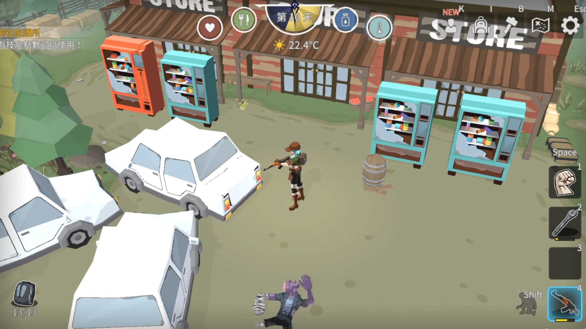 In addition, zombies also have hearing ability to recognize the surroundings. Your running, exploring, shooting or attacking will attract the attention of zombies. You can attack zombies by sneaking.
