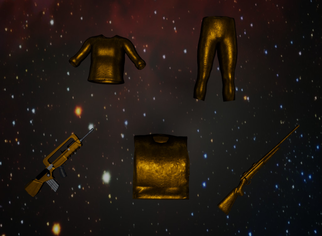 • Limited edition gold plated clothing and weapon skins (see pictures above)