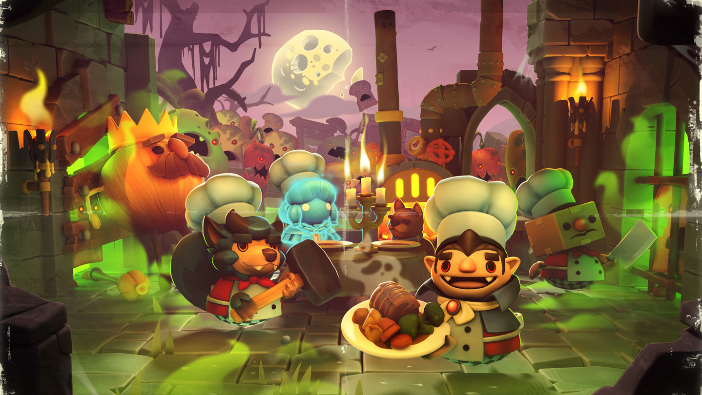 Four new chefs join the fray! Vampire chef, Ghost chef, Werewolf chef and returning favourite Boxhead chef from Overcooked!