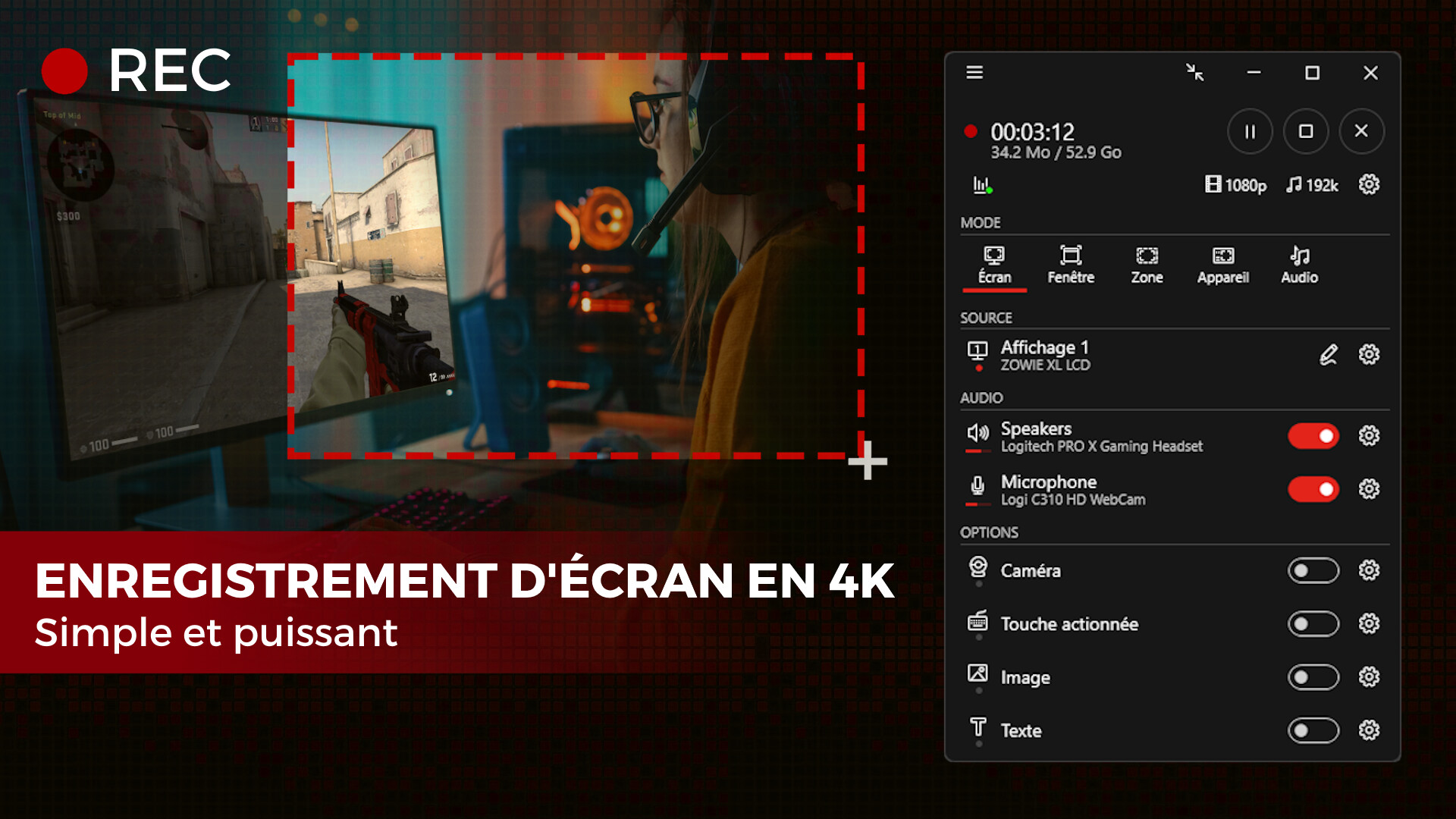 Logiciel d'enregistrement d'écran ultime pour l'enregistrement de jeux, de didacticiels vidéo, de démonstrations de produits, de vidéos YouTube et bien plus encore.