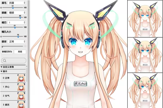 You can customize your very own emotion. Just drag the parameter to the character’s face and it’ll change immediately.