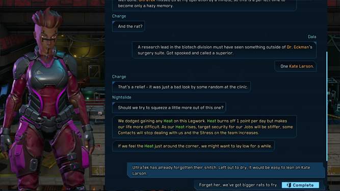 We plan to continue to expand existing systems like heist leverage and planning options, safehouse base-building, interactions with your network of contacts, head hunters, and more.