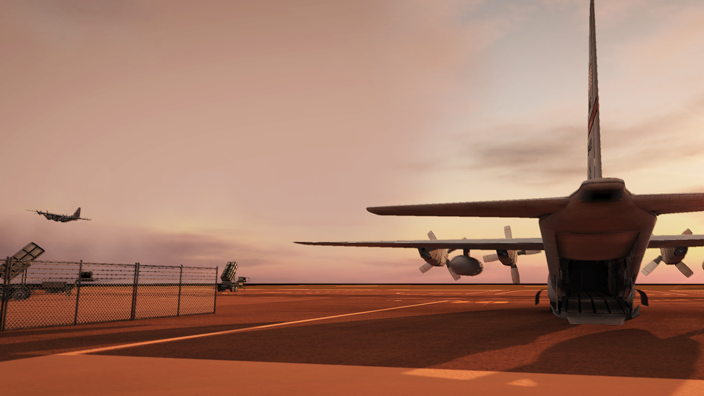 Collect your parachuting equipment and board the majestic Lockheed C-130 Hercules aircraft.