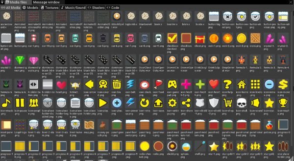 Visualise and manage your media assets with the asset browser window - view media such as images, 3D models and text files and listen to sound and music files