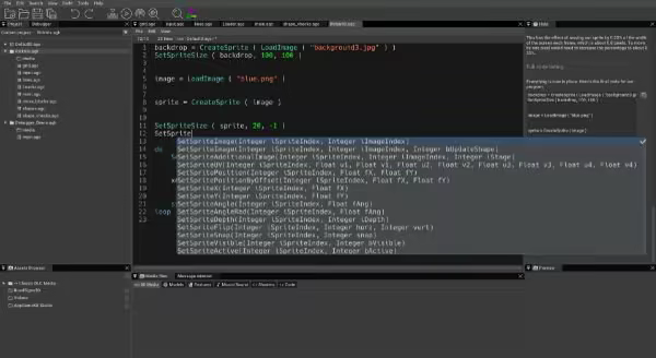 With AppGameKit Studio we've re-imagined the game development user interface with an all-in-one work space. You can now quickly drag & drop assets to visualise your scenes, code with AppGameKit script, easily browse app media, run live debugging sessions, access online help and lots more!