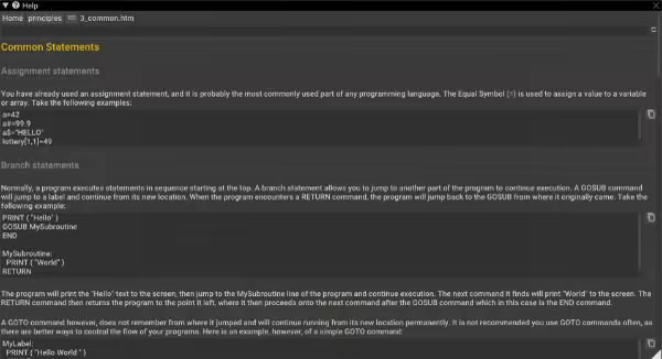 Help is always at hand with the new integrated help window. The integrated search makes it a cinch to find the advice you need from the hundreds of documented commands. You can even drag & drop commands from help directly into your source code space!