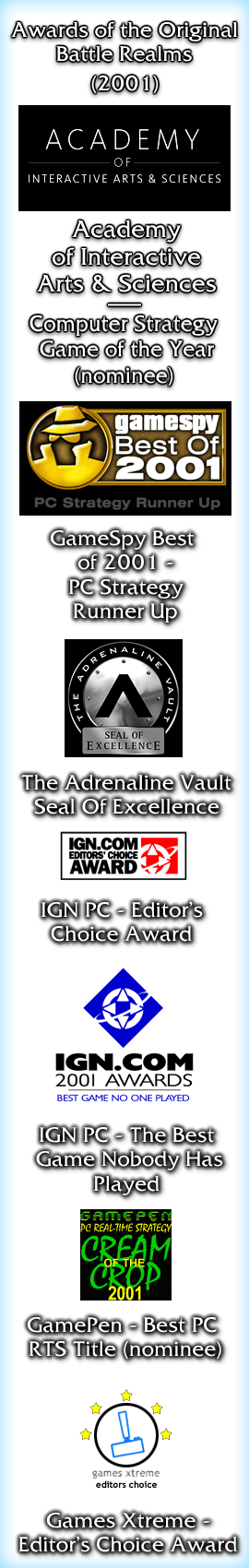 “The game exudes style, polish, and quality from every pixel... From gorgeous visuals to immersive gameplay, Battle Realms never ceases to amaze.”