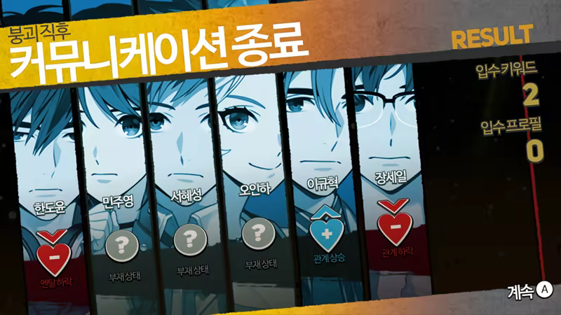 대화 속 선택지와 반복 플레이를 통해 시나리오는 가지치듯 뻗어나가며,