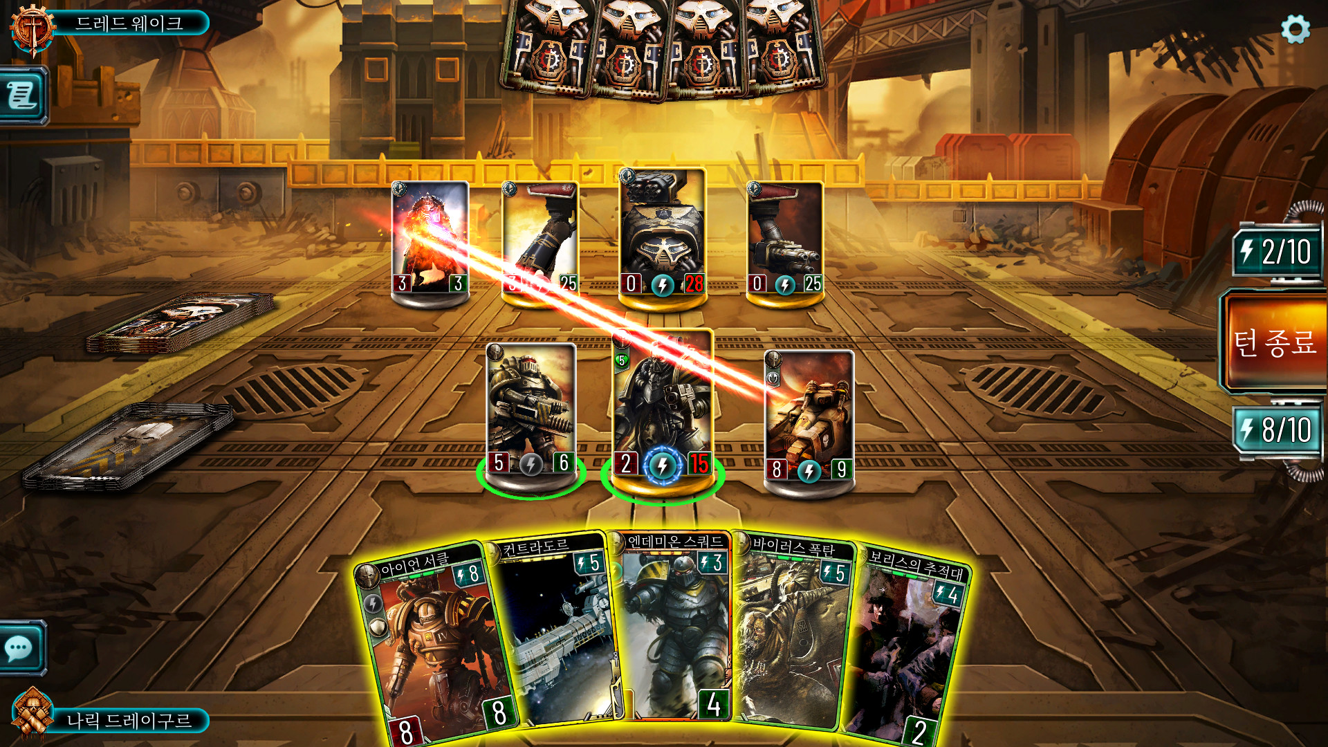 군단을 선택하고 카드를 모아 메카니쿰, 임페리얼 아미 또는 카오스의 지원을 받는 스페이스 마린으로 덱을 구축하여 은하계를 정복해보세요. 길드에 가입하여 카드 전략 및 덱에 관해 의논해보고 PvP 아레나 카드 배틀에서 전투를 해보세요. 웅장한 파벌 전쟁 속에서 선택하는 편에 따라 게임 내 추가되는 신규 카드, 의상 및 군단이 좌우됩니다. Games Workshop이 제작한 워해머 40,000 세계관에서 다채로운 배경으로 손꼽히는 호루스 헤러시를 온라인 TCG 카드 게임으로 플레이해보세요.