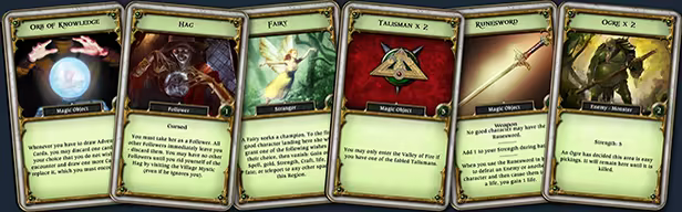 In Talisman: Origins, you travel around the game board encountering unique cards every turn and then battle, collect or recruit the cards you find. Encounter new cards each time you play, making each story your own!