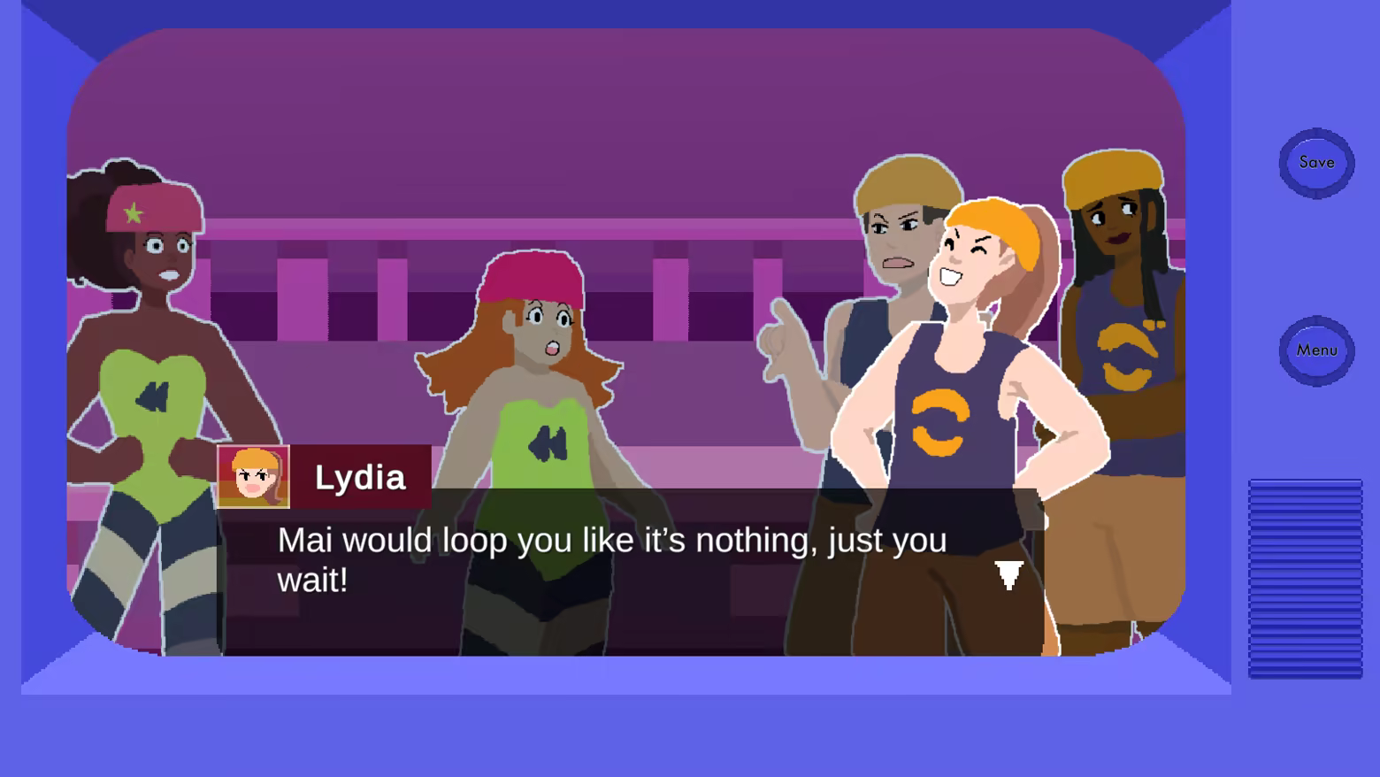 You play as Maggie, a highschooler on the Rockin' Rollergirls who has a crush on one of her rivals - Patricia.