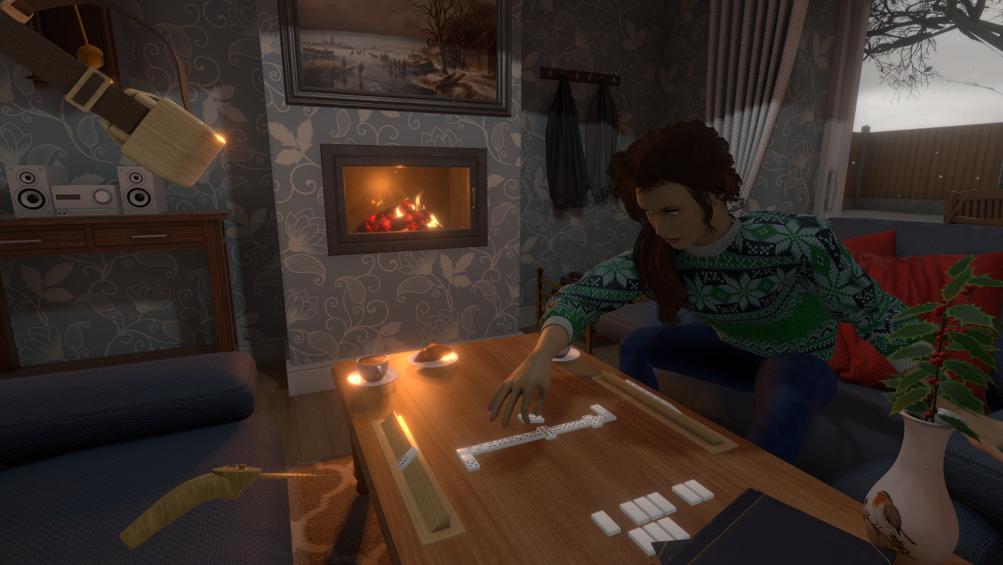 The variant of dominoes in this game is block dominoes. Each player selects 7 dominoes. The rest are then put on the side. Each player takes turns to place down a domino, with a matching number, to either end of the line. If a player has no matching dominoes, then they must keep picking from the dominoes on the side, until they do. If there is none left on the side then the player skips their turn. The first player to place down all of their dominoes is the winner. The game ends in a block, if neither player can place down all their dominoes and the winner will be the one who laid down a domino last.